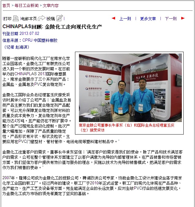 CHINAPLAS 2013回顧:金化接受雅式記者采訪